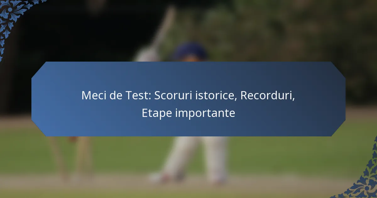 Meciurile de test au o istorie plină de evenimente, marcată de evoluția scorului, abilităților jucătorilor și condițiilor terenului, care au influențat semnificativ strategiile echipelor și rezultatele meciurilor. Recordurile și reperele realizate în acest format nu doar că sărbătoresc realizările individuale și ale echipelor, dar ilustrează și evoluția mai largă a cricket-ului și semnificația sa culturală. Înțelegerea acestor elemente oferă o perspectivă valoroasă asupra bogatei moșteniri a jocului și a realizărilor remarcabile ale jucătorilor săi.